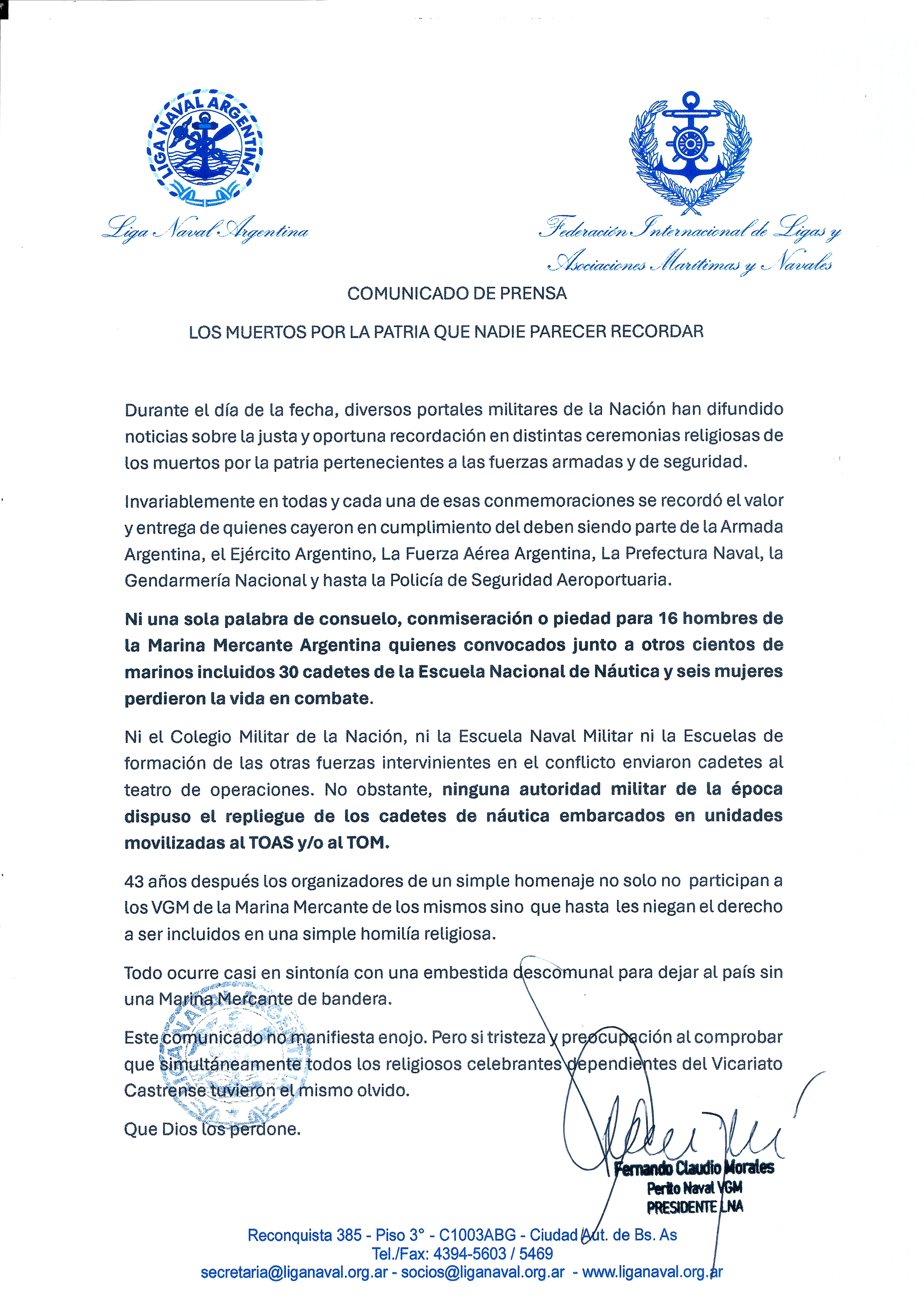 SIN MENCIÓN A LOS MARINOS MERCANTES MUERTOS POR LA PATRIA, LA ARMADA LLEVÓ ADELANTE LA TRADICIONAL CEREMONIA EN DISTINTAS SEDES DE LA INSTITUCIÓN