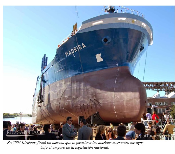 En 1991, con la fantasÃa descripta en los considerandos del decreto 1.772 de fomentar la Marina Mercante, se permitió que buques de terceras banderas hicieran el tráfico de cabotaje. Las mismas empresas cambiaron sus unidades de bandera argentina a banderas de conveniencia, crearon empresas de contratación de personal con oficinas en Buenos Aires y forzaron a los marinos mercantes argentinos a firmar contratos fechados en Panamá, Monrovia y similares. Los marinos argentinos se vieron forzados a navegar bajo legislación extranjera con graves consecuencias no solo en sus ingresos inmediatos sino para su futura jubilación.